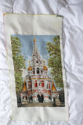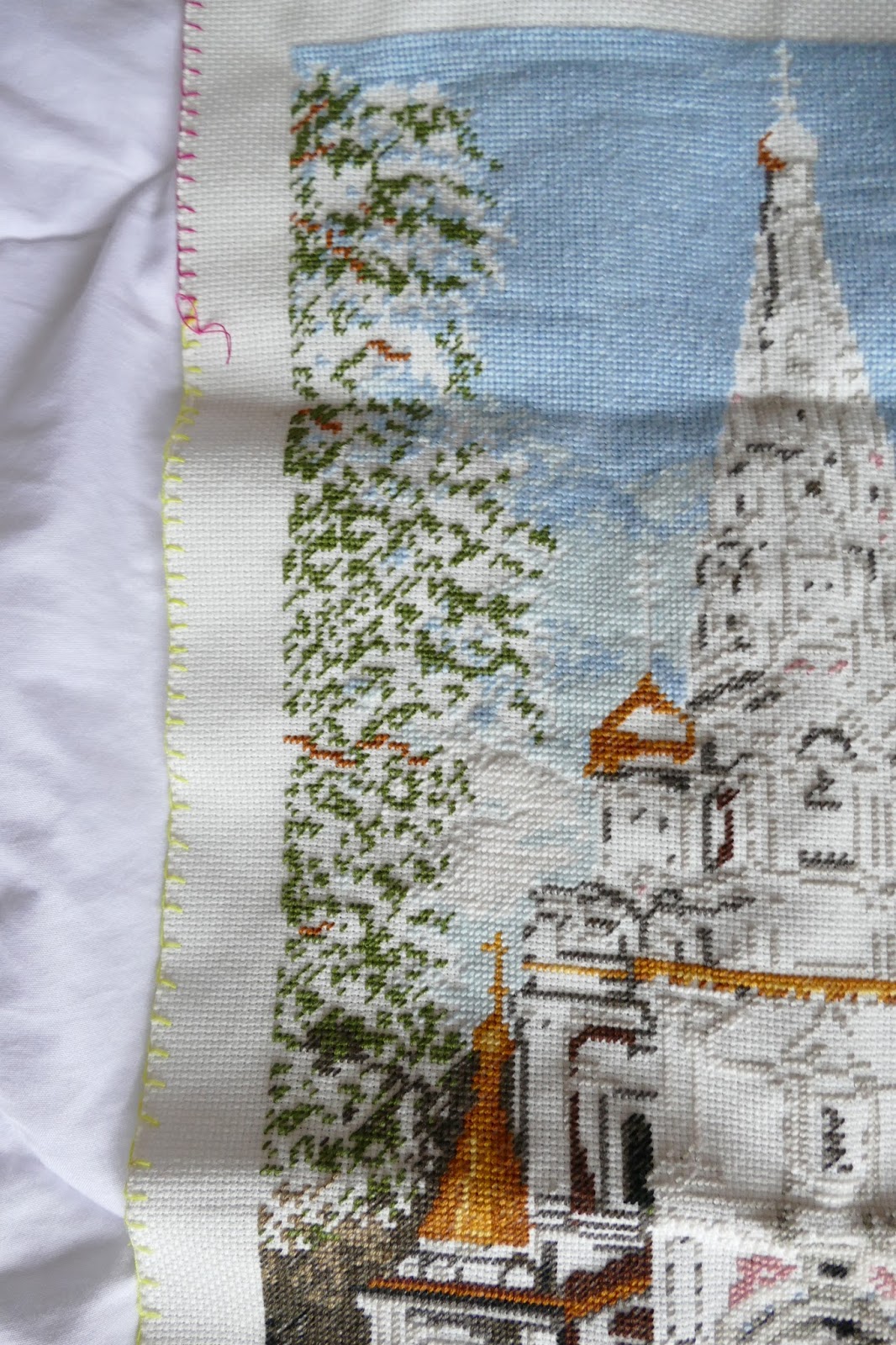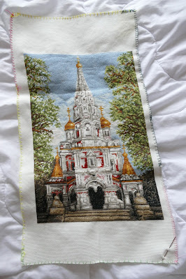 Now what I must do with this gobelin, as with any gobelin, is to hand wash and towel dry it. If you're not sure how to do this, I've found the most useful advice was published on the DMC USA web site. Definitely read it through and you'll be good to go too :)