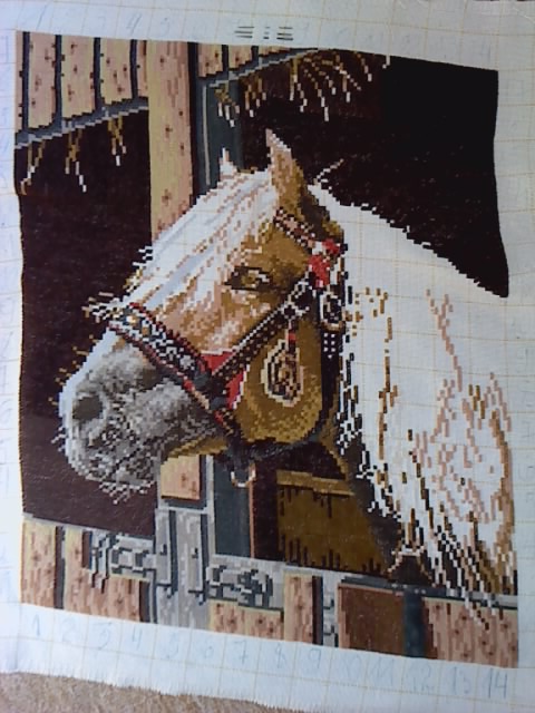 Finally finished with that shade of the dark gray (not just for this part, but for the whole Gobelin), plus did some work on the top - the ears of the horse - hence you have two detail pictures to enjoy: