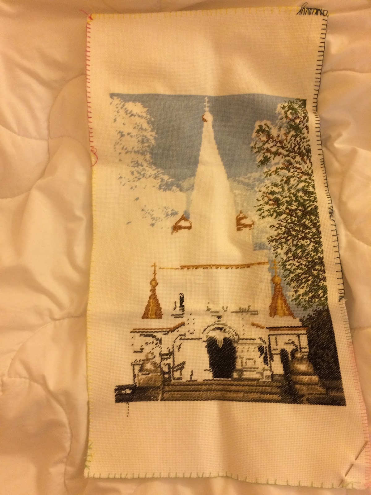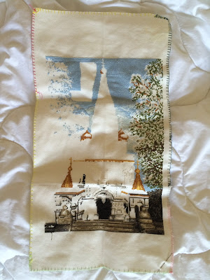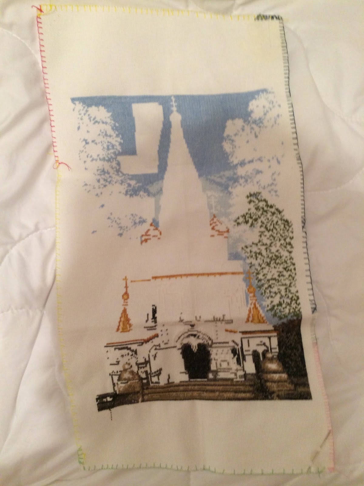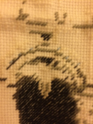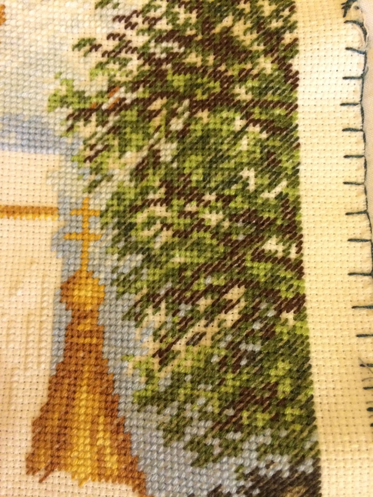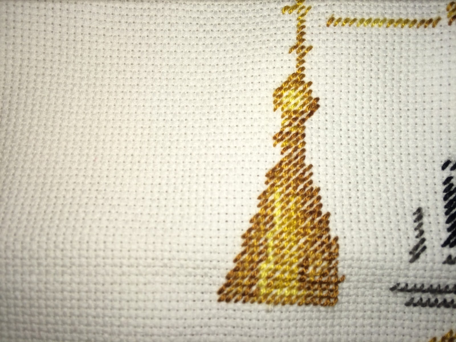 Such a relaxing Sunday! Had time to work with three different colours :D Finished on the brown (see previous post for more info on what and where), worked with some blue - filling in the massive gap on the left-hand side - and did less than a handful of stitches in green on the right hand side of gobelin, just to top off my tripling today ;)