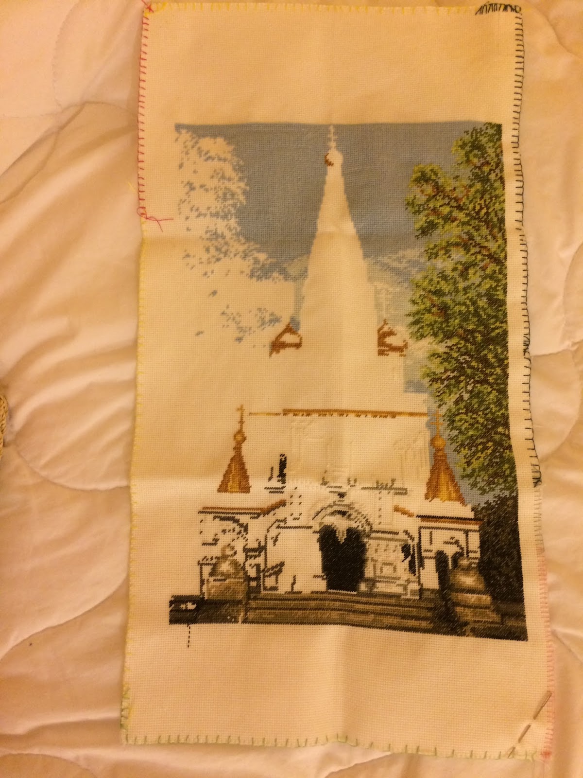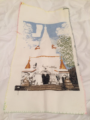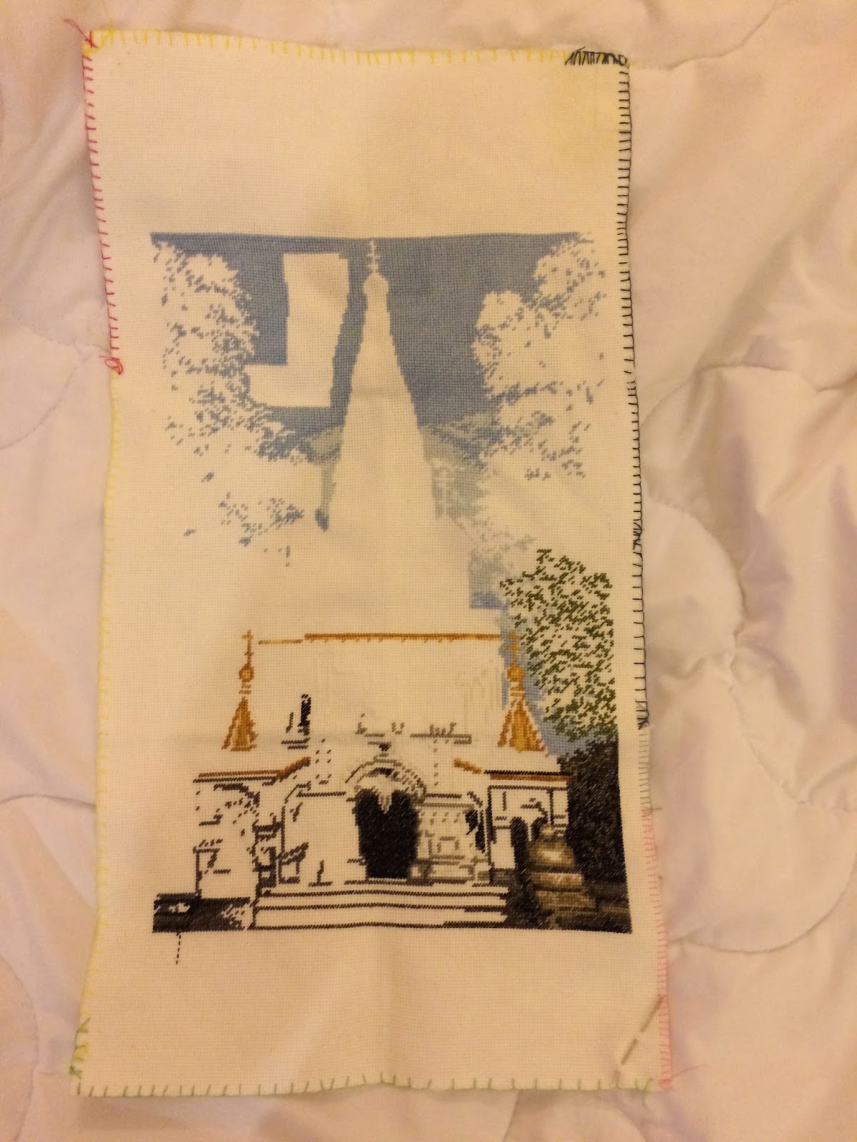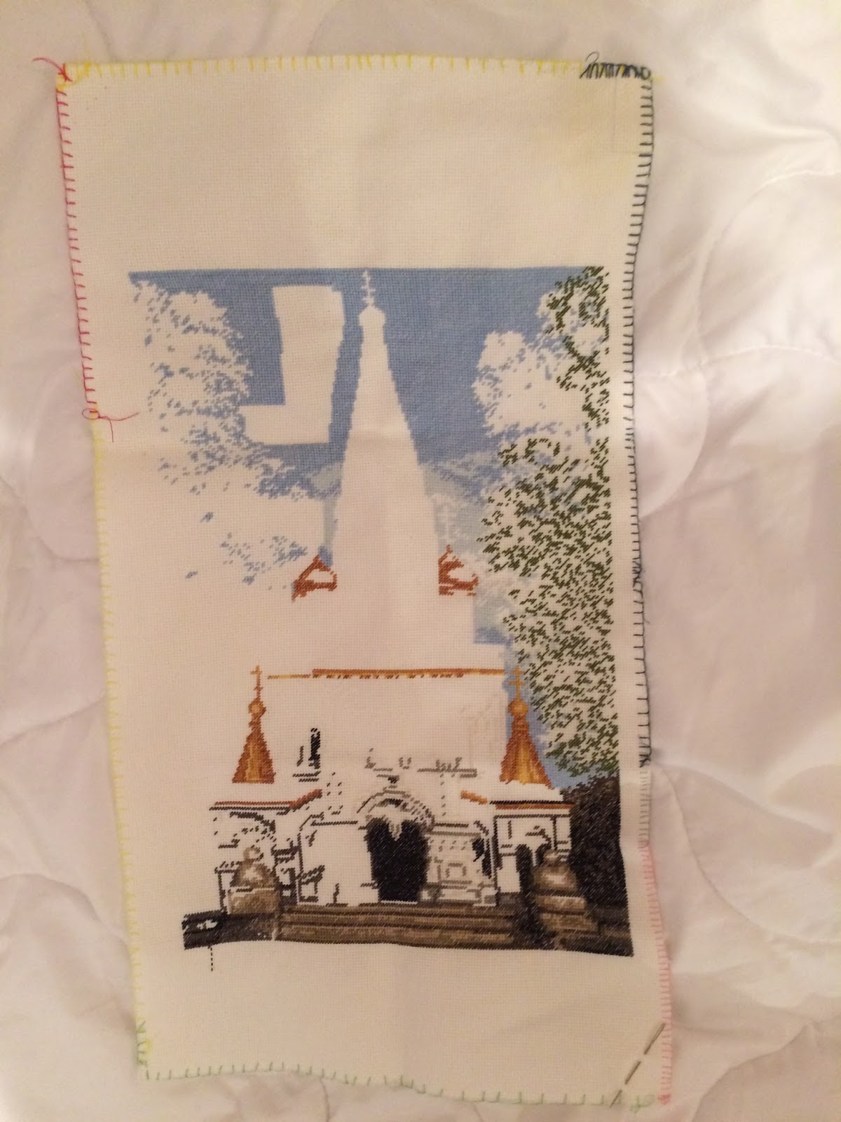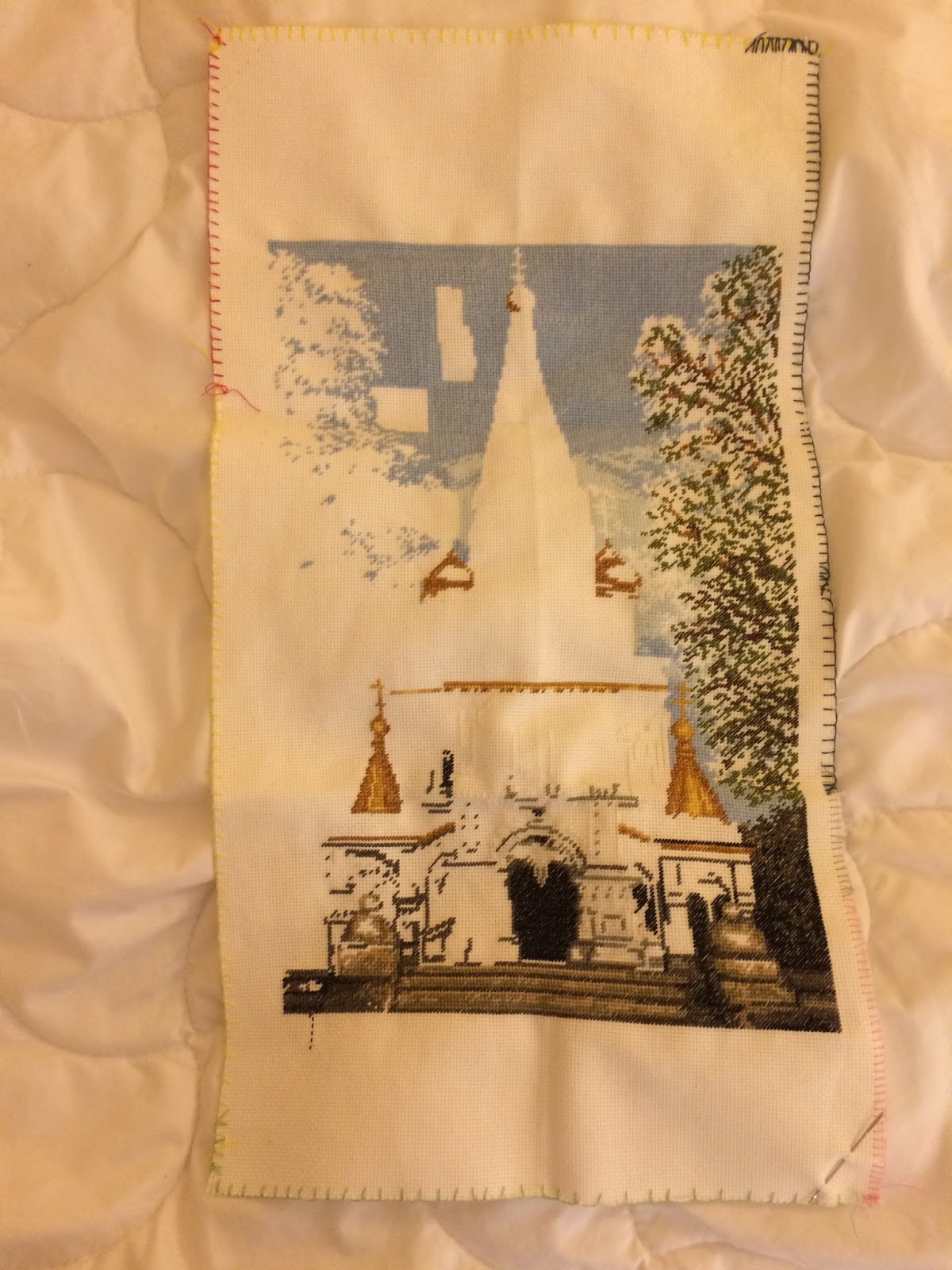 Such a relaxing Sunday! Had time to work with three different colours :D Finished on the brown (see previous post for more info on what and where), worked with some blue - filling in the massive gap on the left-hand side - and did less than a handful of stitches in green on the right hand side of gobelin, just to top off my tripling today ;)