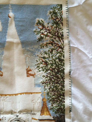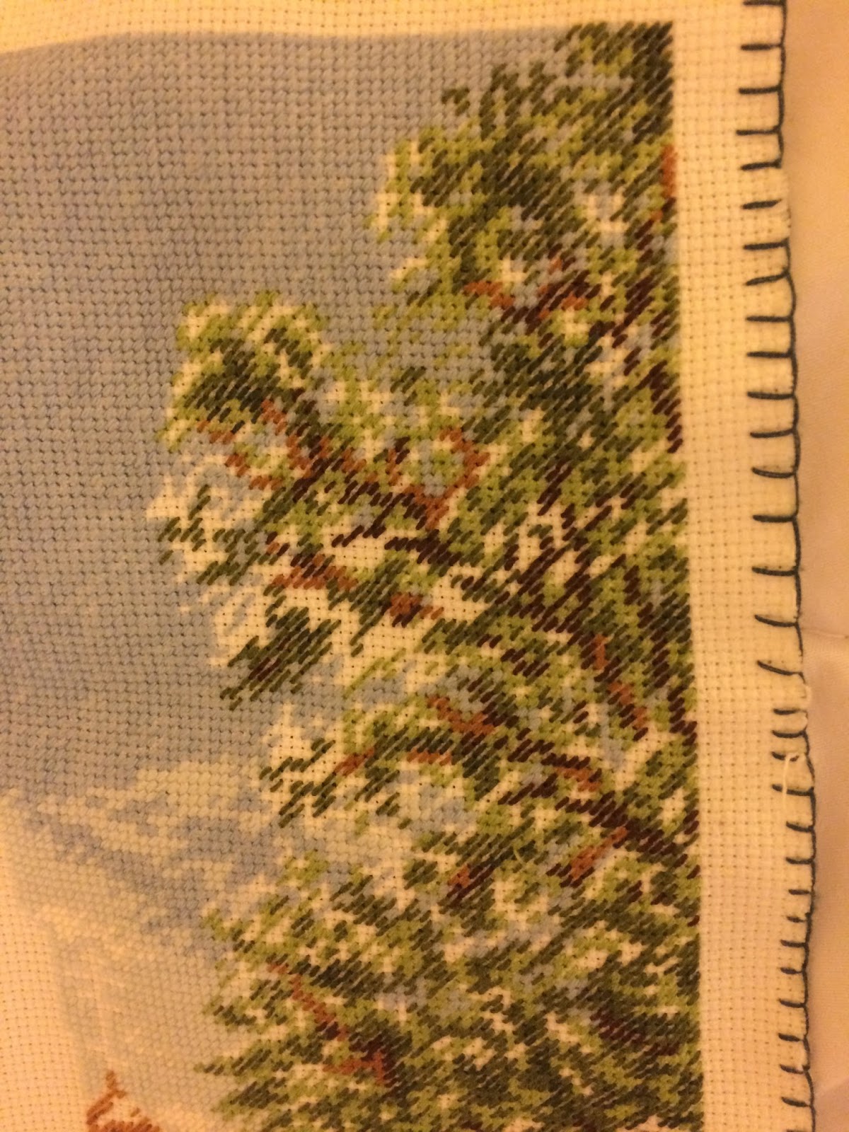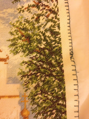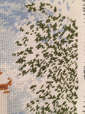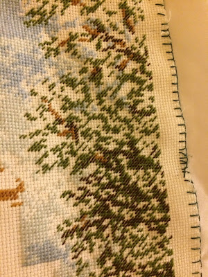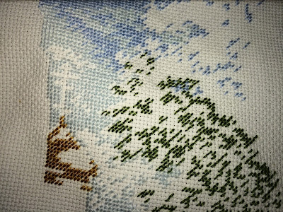 Even though or maybe precisely because it was Friday night [I'll let you decide which one ;)] I did lots of work. Finally this shade of green on this side of the gobelin is finished!!! YAY!!! I also did a bit of work with brown - this shade of brown is also done on the right-hand side. So quite a win tonight :D :D :D