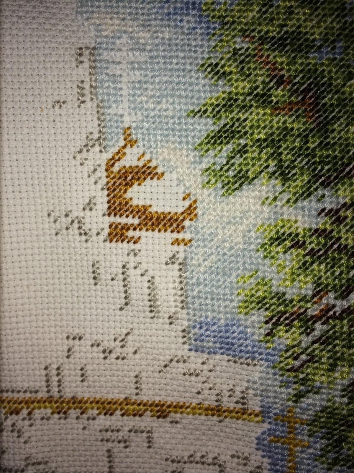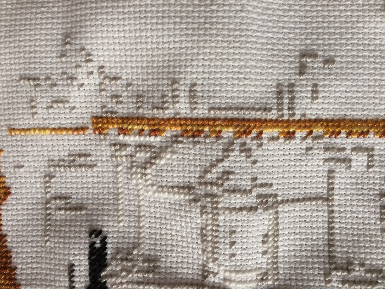 The pictures were taken in natural light, so I think they came out looking a bit...odd... but anyway, you can still see that I did about an hour's worth of work with the same light gray colour I've been using for a while. This is the first time I've worked on the gobelin this month , so here are the results: